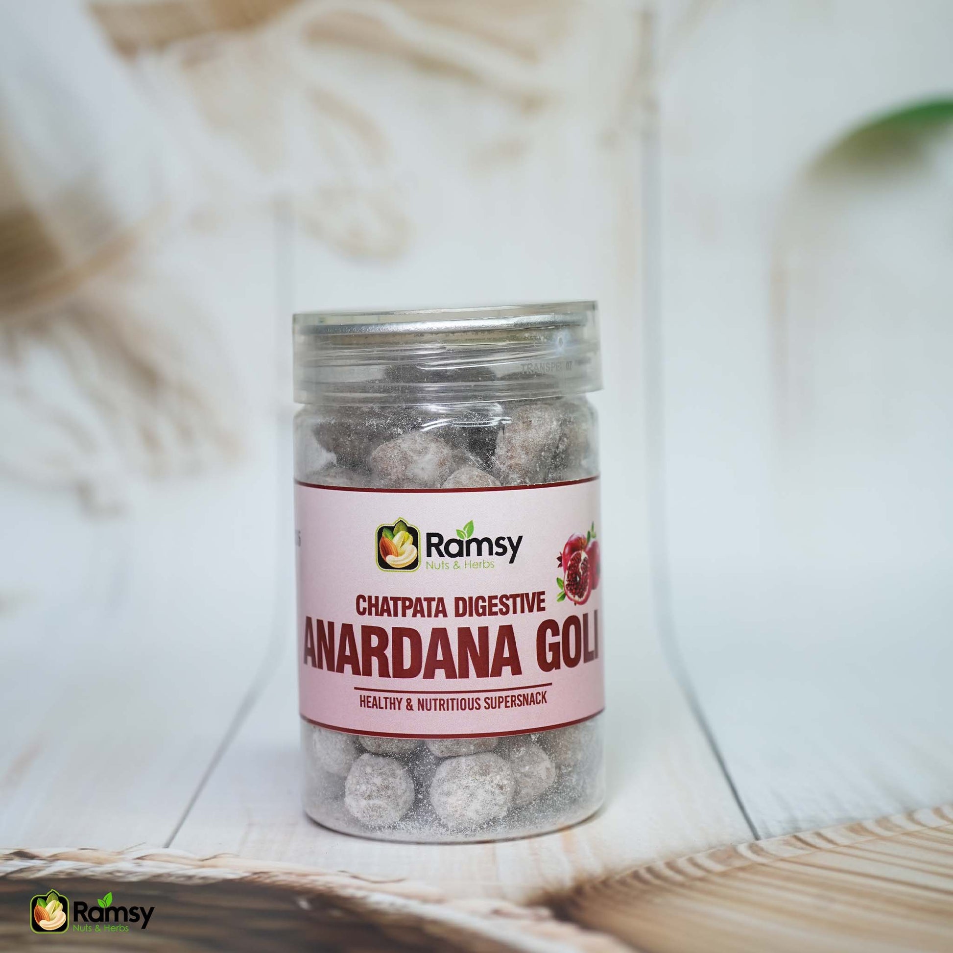 Indulge in one of India's most beloved traditional treats with Ramsy's Chatpata Digestive Anardana Goli. Each goli is a powerhouse of tangy, sweet, and savory flavors, made from the goodness of real dried pomegranate seeds (anardana).
