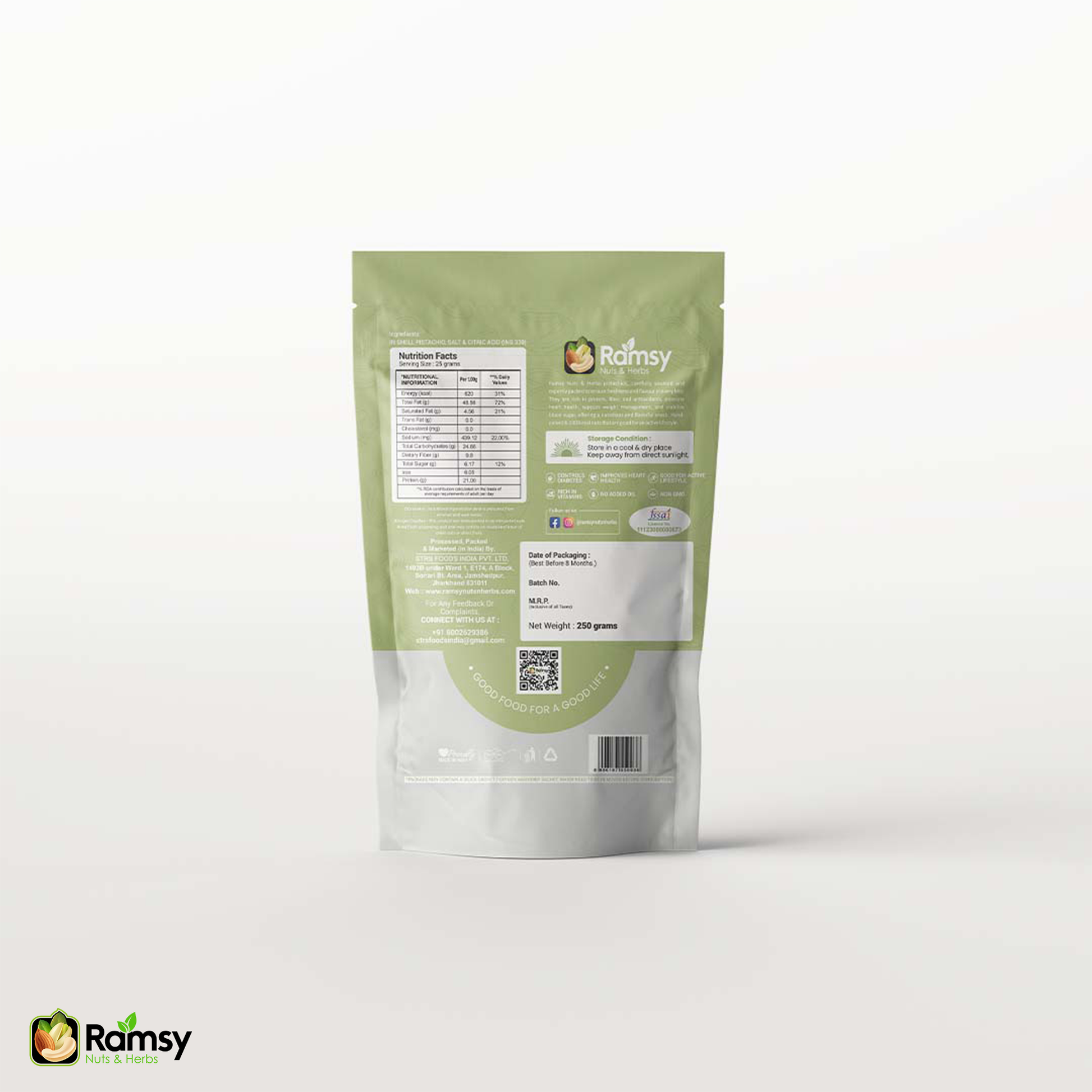 Experience the irresistible crunch and savory flavour of Ramsy's Premium Roasted & Salted Pistachios! Sourced directly from the finest farms, each pistachio is perfectly roasted and lightly salted to create a truly satisfying and wholesome snack for any time of the day.