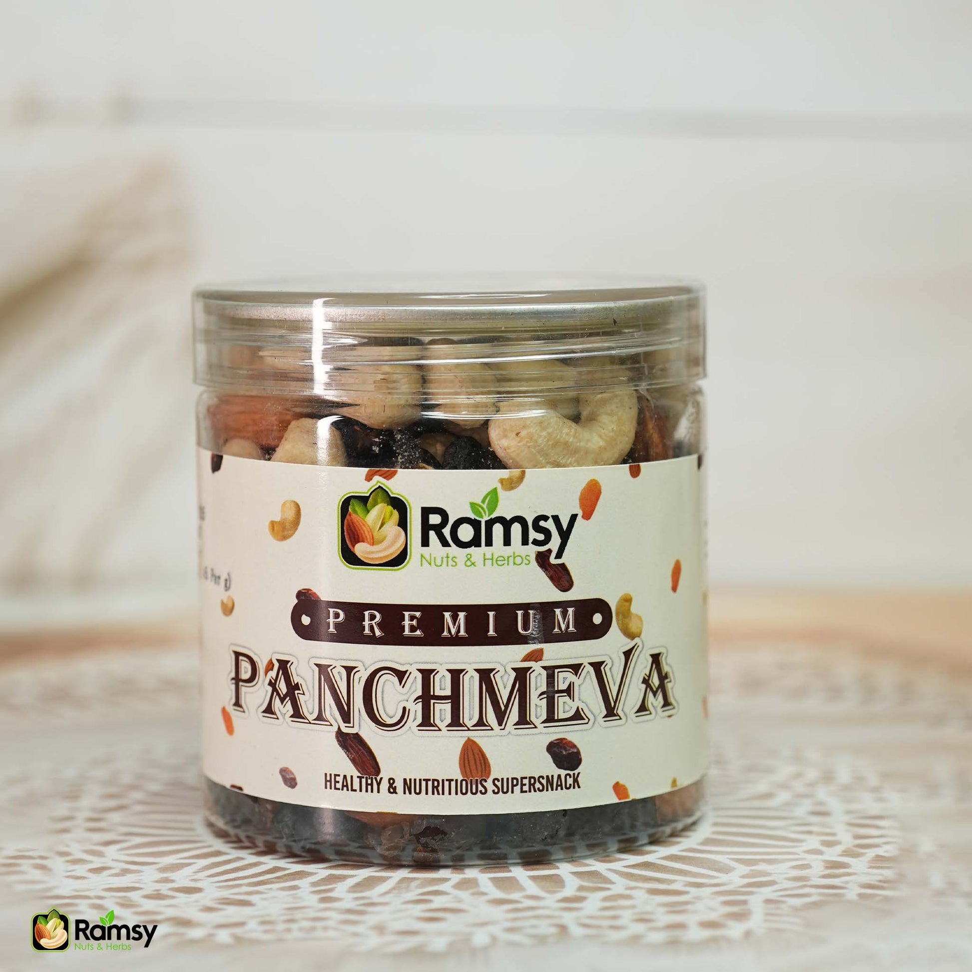 Discover the purity and goodness of a timeless Indian tradition with Ramsy's Premium Panchmeva. This sacred blend of five handpicked dry fruits and nuts ("Panch" meaning five and "Meva" meaning dry fruits) is a revered staple in Indian culture, cherished both for its use in holy rituals and for its immense health benefits.
