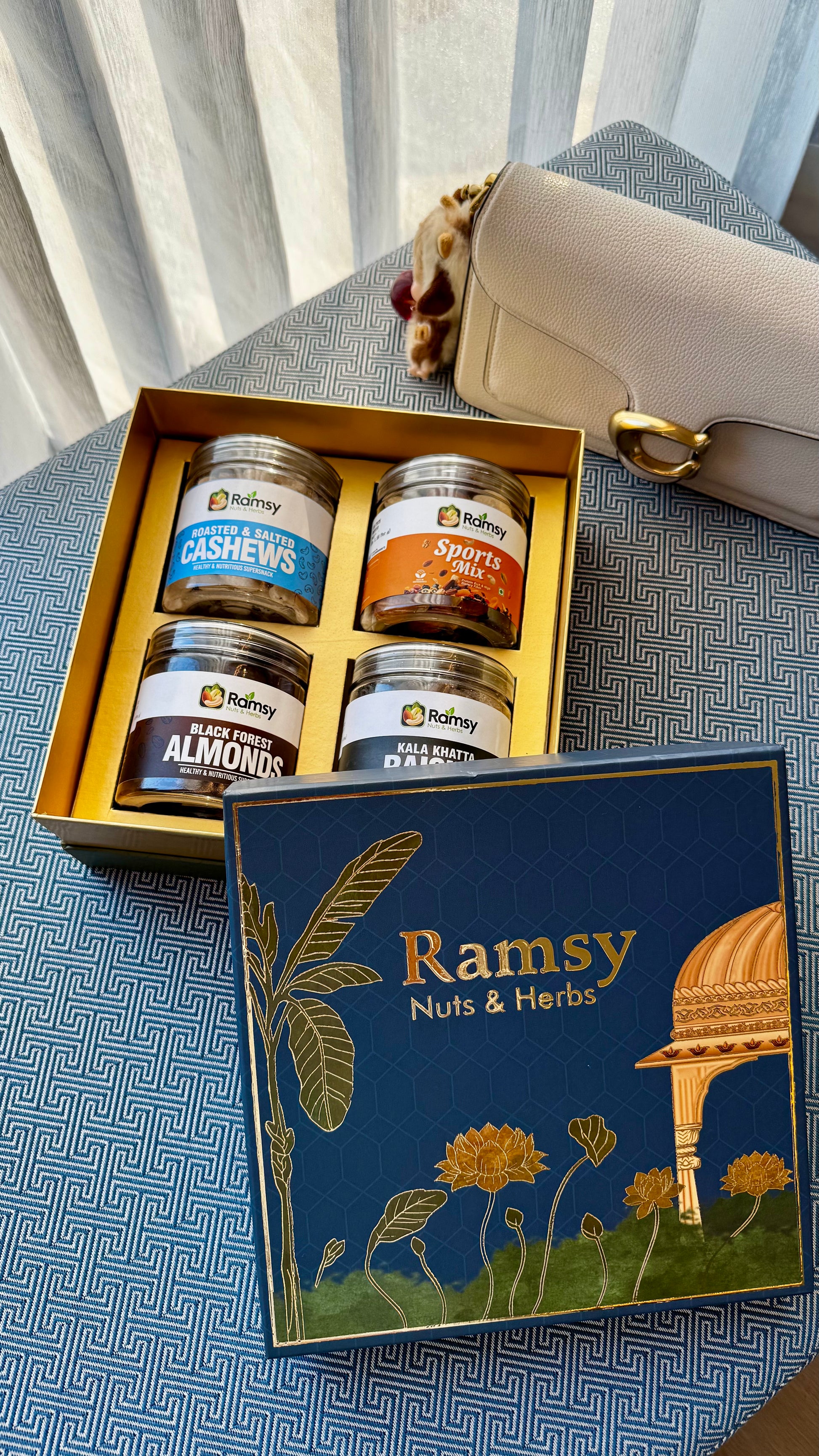 Celebrate special moments with a premium gift hamper from Ramsy Nuts & Herbs, thoughtfully curated to bring taste, health, and elegance together. Beautifully packed in a luxurious box, this set includes: